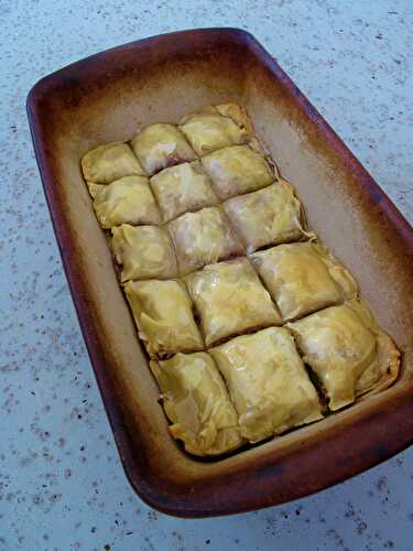 This is the classic baklava recipe, but with olive oil instead of butter and in a different shape.