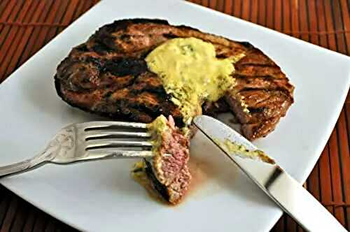 A thick slice from the leg, Lamb Steaks with Mustard Rosemary Butter are better than chops in my opinion