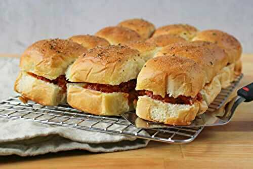 Italian meatball sliders on Hawaiian rolls make an easy appetizer, lunch, or dinner, whether you're serving 4 or 24 people!