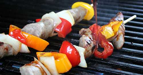 These Sausage, Pepper, and Onion Kabobs are the perfect way to celebrate Oktoberfest.