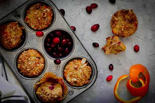 Cranberry and orange streusel muffins are a blend of low carb and gluten free flours, filled with fresh cranberries, and orange zest.