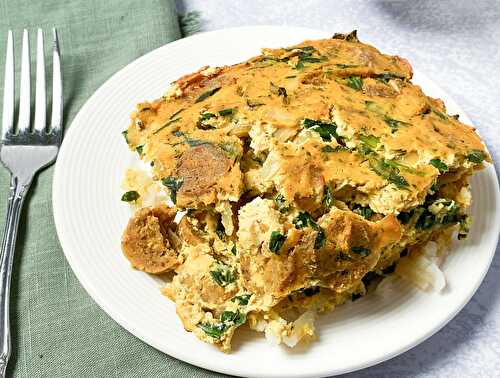 This vegan breakfast casserole combines your favorite classic breakfast items in one dish! Hash brown potatoes, breakfast sausage, and vegan egg baked together to make the tastiest breakfast dish that's sure to please your whole family!