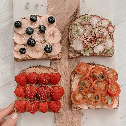 Quick and easy breakfast toast four ways, two sweet and two savoury options.