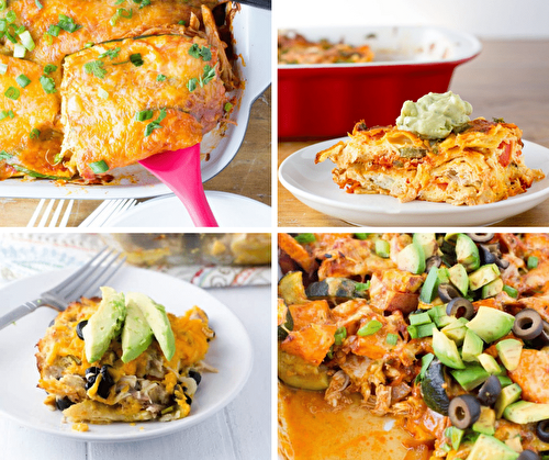 This gluten-free leftover turkey breakfast enchilada casserole is a delicious way to use up leftover turkey or to make with rotisserie chicken!