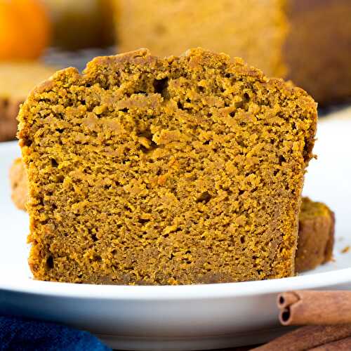 This easy, healthy pumpkin bread is ultra moist with an irresistible pumpkin spice flavor.