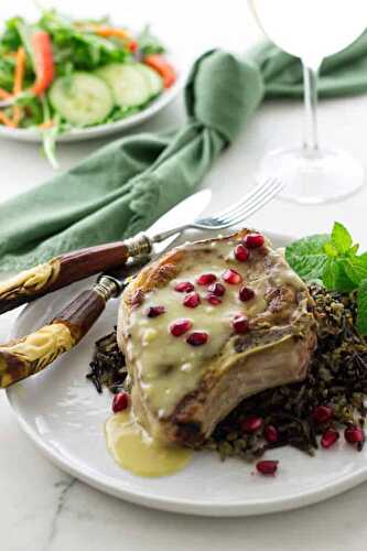 An easy recipe for tender and flavorful roasted pork chops with a tangy honey mustard sauce.