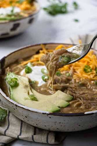 Green Chili Chicken is a super easy weeknight dinner made in a slow cooker or an Instant Pot.