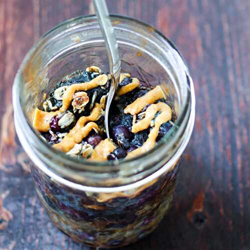 This peanut butter overnight oats is loaded with warm bursting blueberries, drizzled with creamy peanut butter, and packed with protein, for a bowl of oatmeal that will keep you full for hours!