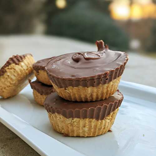 You only need 4 Ingredients for these no bake Protein Peanut Butter Cups! Oats, protein powder, peanut butter and chocolate! Each cup is 187 calories 8 grams of protein, 11 carbs