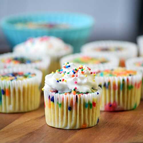 Baked oatmeal just got an upgrade: Birthday Cake Baked Oatmeal, with protein powder! Each mini muffin is only 15 calories!