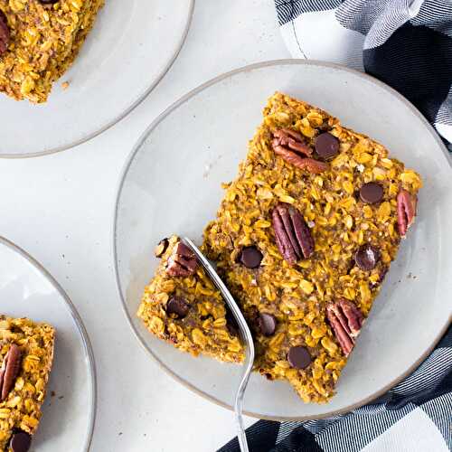 Easy to make delicious spiced pumpkin oatmeal bars that are packed with nutrients.