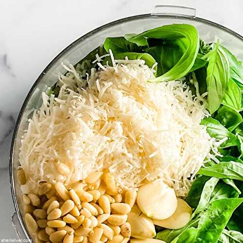 The classic Basil Pesto Sauce combines fresh, young Genovese basil leaves with pine nuts, olive oil, Parmesan cheese and a touch of salt for an out of this world flavor! Pesto is an easy to make base for so many wonderful pasta meals, dips, dressings.
