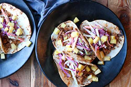 A quick and easy ground chicken taco recipe that’s packed with smoky chipotle flavor balanced with fresh, sweet pineapple and a creamy, crunchy slaw!