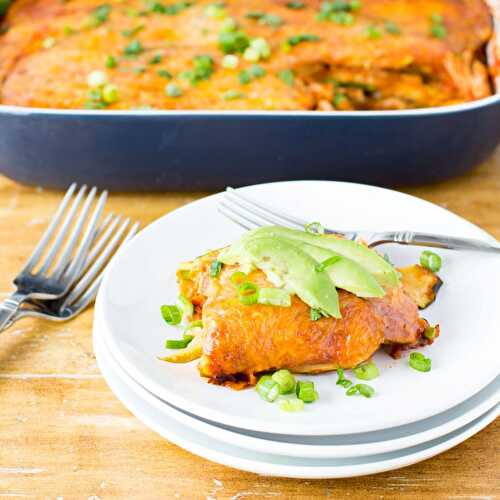 This Leftover Turkey Low Carb Enchilada Casserole uses zucchini noodles instead of tortillas for a healthy veggie-packed win, fewer carbs, and all the enchilada flavor!