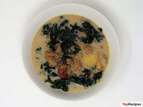 A creamy Italian soup made of seasoned ground turkey, onion, potatoes, and kale.