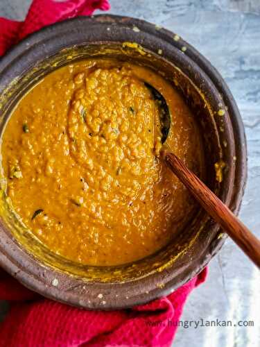 My one-pot, vegan Sri Lankan spicy lentil curry with coconut milk recipe (Parippu Mirisata/පරිප්පු මිරිසට) that you definitely have to try.