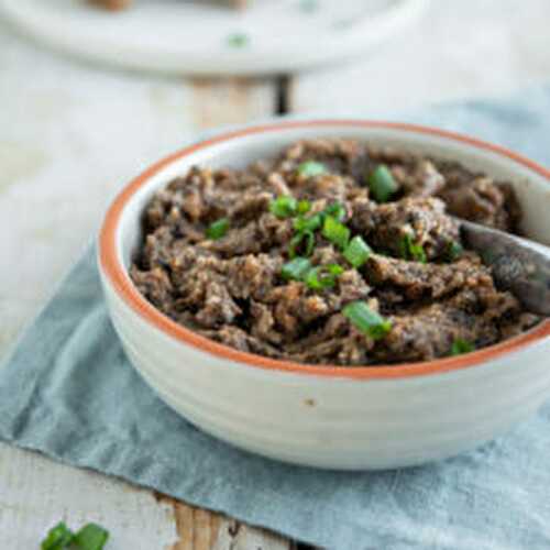 Learn how to make low-fat black bean hummus with soybeans, chickpeas, mushrooms, herbs, and carrots.