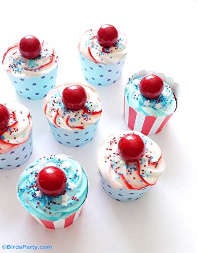 4th of July Coca-Cola® Chocolate Cupcakes with Stars & Stripes Swirl Frosting - easy and pretty recipe for your party or patriotic celebrations!