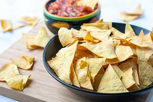 Easy Oil Free Tortilla Chips are a healthy alternative to store bought chips, and are quick to make in the oven or air fryer.