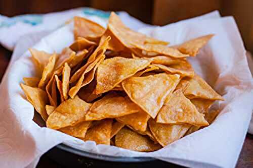 A delicious snack for children and adults; homemade oven baked tortilla chips.