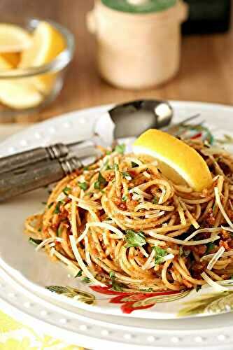 While I love homemade Basil Pesto, this Pasta with Sun-Dried Tomato and Roasted Almond Pesto was fantastic with pantry ingredients I had on hand.
