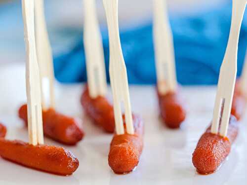 These vegan, slow-cooker barbecue flavored cocktail pups are made with baby carrots instead of little smokies.