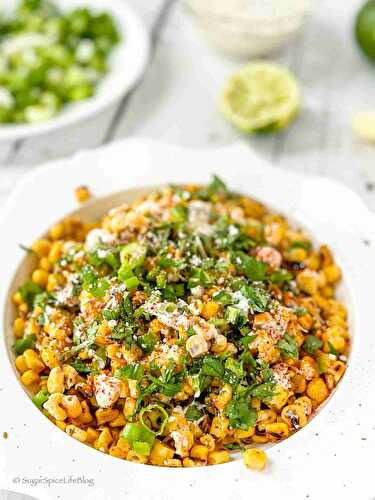 This salad version of Mexican street corn is a sweet, spicy and tangy corn salad mixed with a creamy dressing (Mexican street corn salad (esquites)