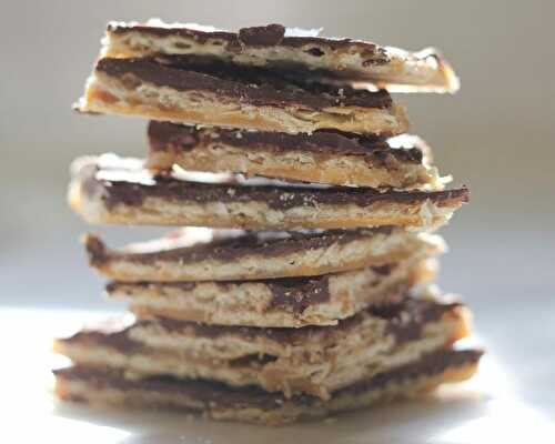 Matzoh crack - matzoh layered with buttery toffee and melted chocolate - you must try it!