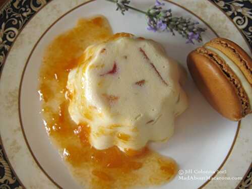 A classic French dessert of candied fruits in a custardy based no-churn ice cream, served with a light apricot coulis or sauce.
