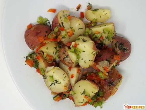 A No-Mayo dill potato salad made with red potatoes and tossed in a Dijon mustard vinaigrette.