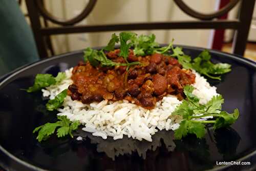 Hearty meatless chili packed with legume proteins and tasty aromas