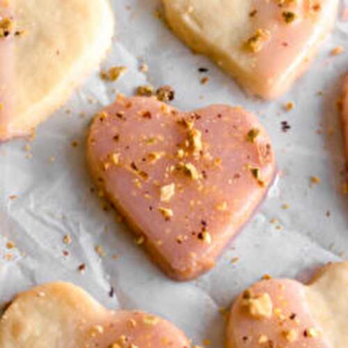 These rose cardamom pistachio shortbread cookies are buttery, melt in your mouth, shortbread cookies dipped in a shiny layer of rose flavoured glaze and will dazzle at your next celebration! These cookies are delicate, buttery, crisp, and perfect for.