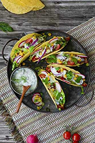 Taco with homemade tzatziki and fresh vegetables, a delicious fusion of mexican and greek flavors