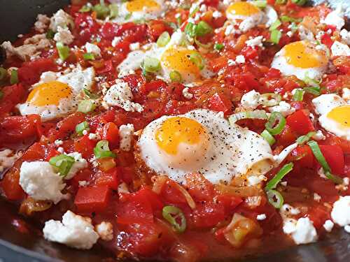 Shakshuka with Quail Eggs is cast iron skillet made, simple and easy vegetarian lunch or dinner with feta sprinkled on the top ! Quick and healthy lunch or week dinner !