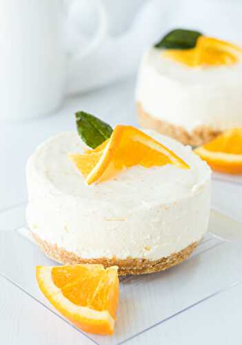 No-baking is required for this perfect summer dessert - Mini Orange Creamsicle No-Bake Cheesecake! Silky cheesecake is brightened with fresh orange juice and zest, then topped with orange whipped cream, and all on top of a buttery vanilla wafer crust.