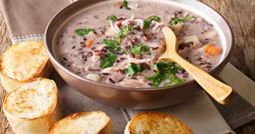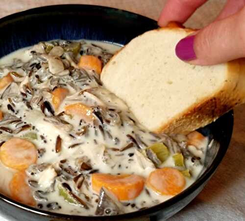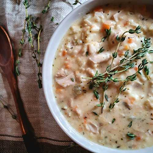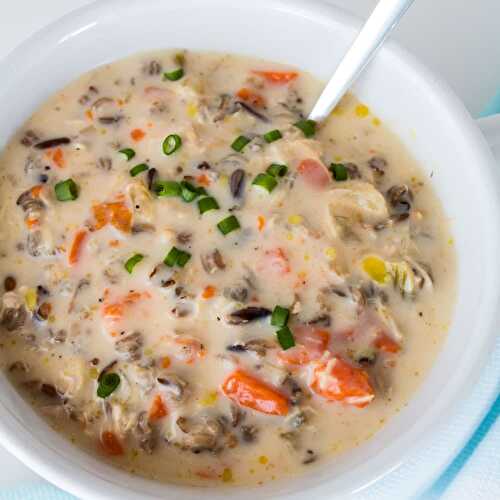 Creamy Wild Rice Soup - Got leftover cooked chicken or turkey? Cook up a pot of soup! This recipe is a healthier twist on a classic creamy turkey and wild rice soup that hails from back east.