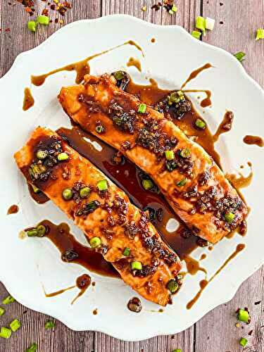 A pretty salmon fillet magnified with a sweet & savory sauce that is so easy to make.