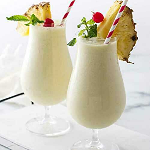 This pina colada mocktail will give you all of the tropical vibes that you get from a traditional pina colada, but without the alcohol! Sweet coconut, fruity pineapple, and citrusy lime juice come together to make this refreshing and popular drink! Top.