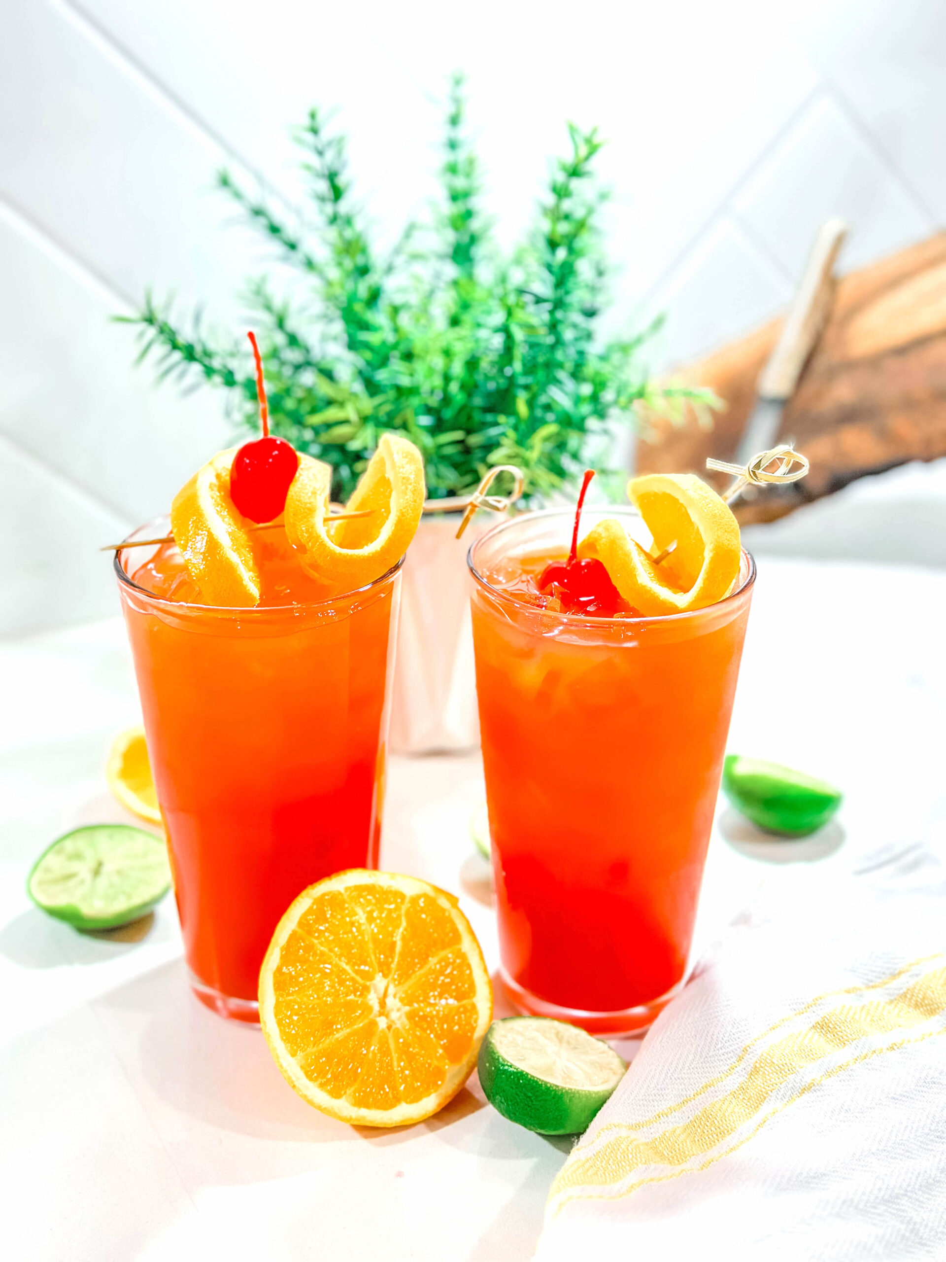 Tahitian Punch is a real delight! It consists of rum, pineapple juice, orange juice, lemonade, vanilla and cinnamon.