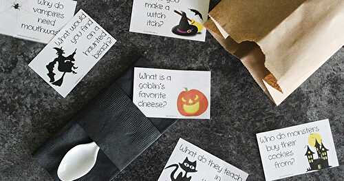 Today I've got a super-fun (and free) printable for you: Halloween Lunchbox Note Jokes! These are kid-friendly jokes that you can put in your child's lunchbox to give them a giggle during their day.