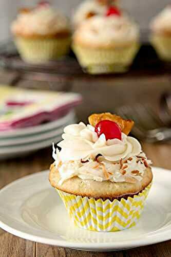 The perfect festive cupcakes that's not really as boozy as it is fun and delicious! These Pina Colada Cupcakes with Rum Buttercream were a huge hit!