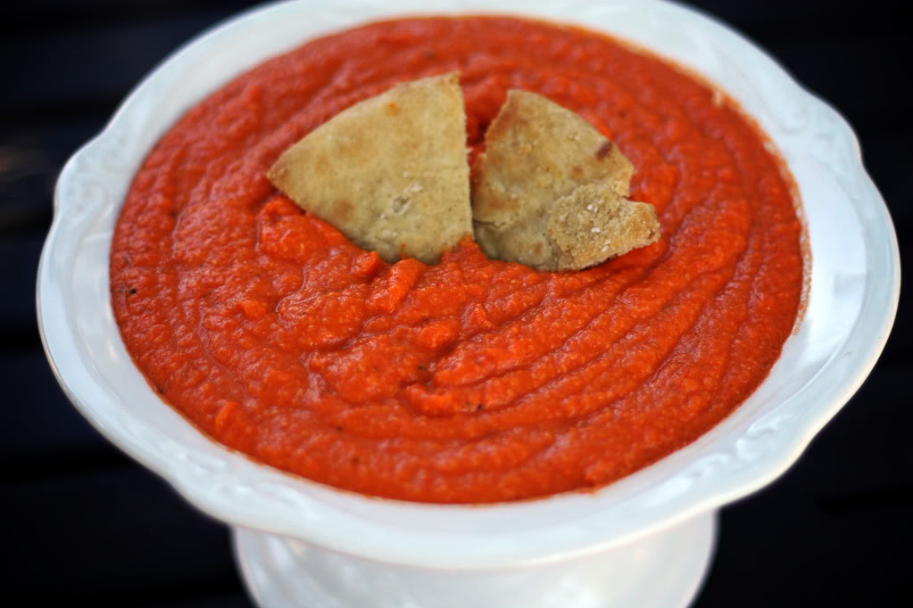 Hi, guys! I'm back with a recipe for a delicious little dip/spread: Roasted Red Pepper Hummus.