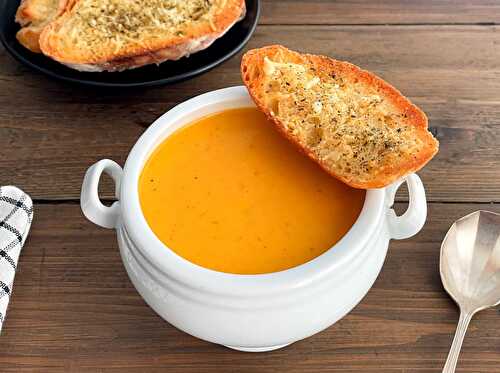 This Roasted Red Pepper and Tomato Soup is brimming with the rich flavors of roasted produce.