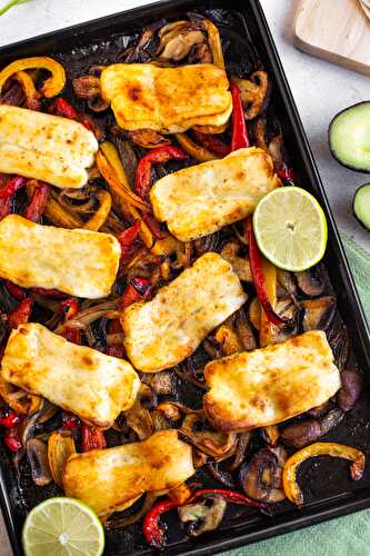 These oven-baked halloumi fajitas have plenty of roasted veggies and thick slices of squidgy halloumi cheese, all cooked up on one big baking tray!