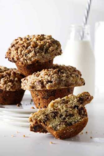 This recipe for Chocolate Chip Muffins with Toffee Crumb Streusel makes light and tender bakery-style muffins, the ultimate chocolate and toffee treat.