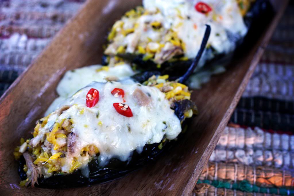 Ever since we went to Bakersville in Missouri and I bought those roasted poblano peppers, it has inspired me to make several dishes using roasted