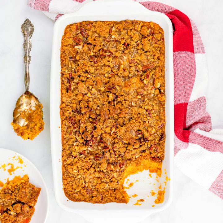 Sweet potato casserole with streusel topping is perfect for your holiday table.