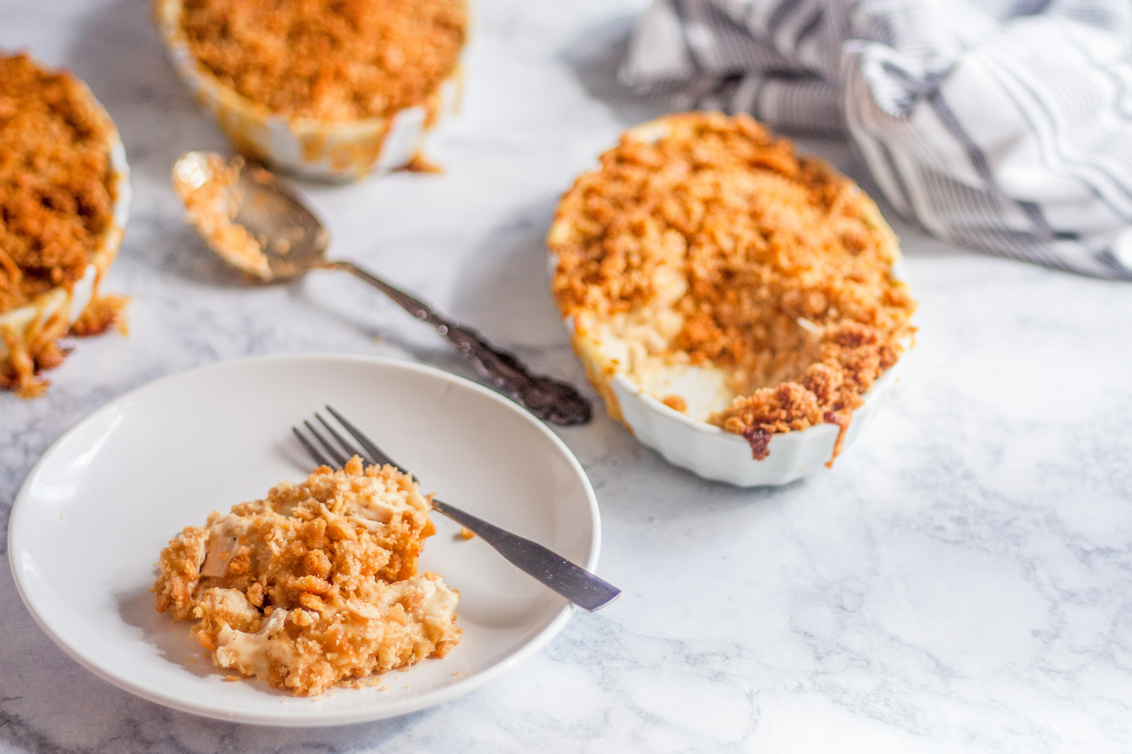 Panko crusted chicken breasts stuffed with Swiss cheese and bacon have a satisfying French onion infused crunch with the comforting flavors of cheese and bacon hiding inside!