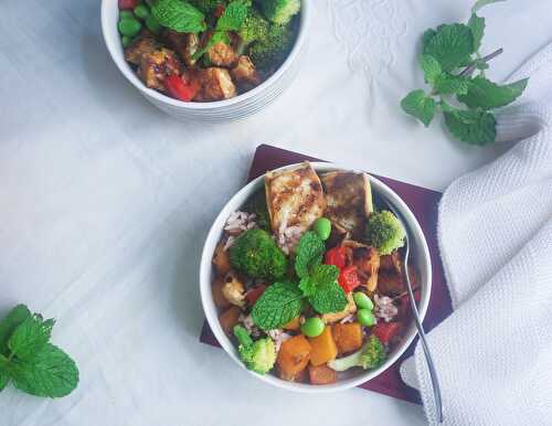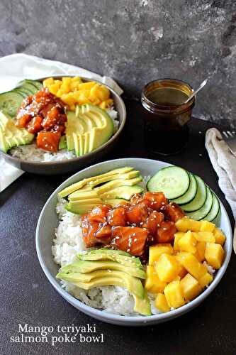 Summer in a bowl with this delicious poke bowl filled with salmon drowned in a homemade teriyaki sauce and fresh mango.