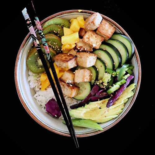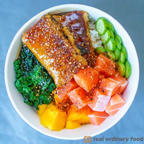 Here's my quick and easy poke bowl recipe featuring vegan sashimi and vegan unagi.